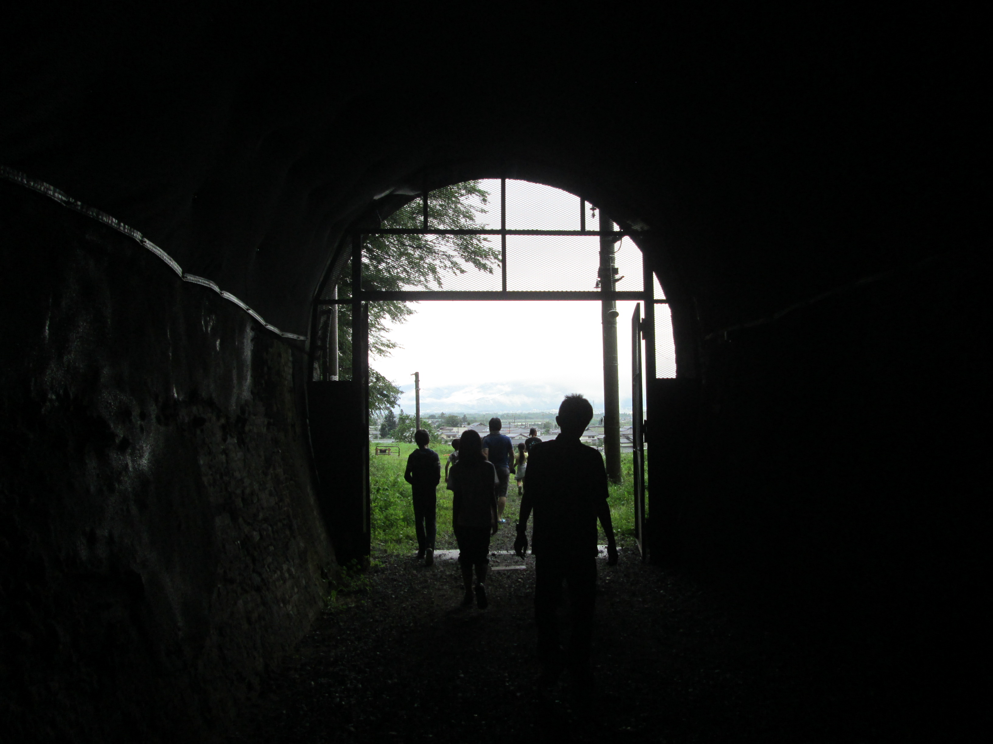 6:30 廃線敷ハイキング。今は使われていない篠ノ井線のトンネルまで朝の散歩。